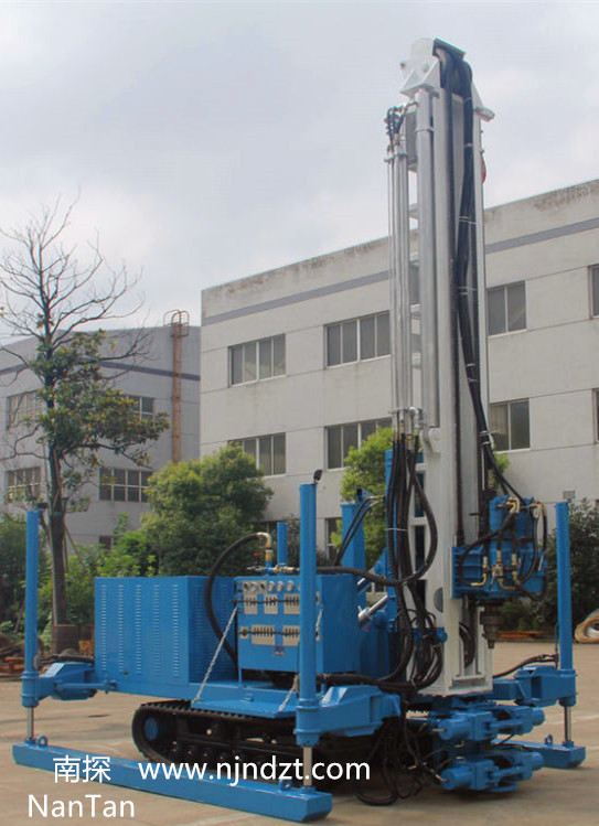 該鉆機(jī)最大特點(diǎn)為動(dòng)力頭行程為5米,配備有大扭矩液壓馬達(dá)回轉(zhuǎn)、油缸推進(jìn)及提升能力大。配有液壓伸縮隨手吊車和液壓卷?yè)P(yáng)機(jī),減輕勞動(dòng)強(qiáng)度。動(dòng)力頭具有多種速度,使得鉆孔范圍更寬。液壓支腿行程大,不需吊車鉆機(jī)即可轉(zhuǎn)場(chǎng)裝卸。