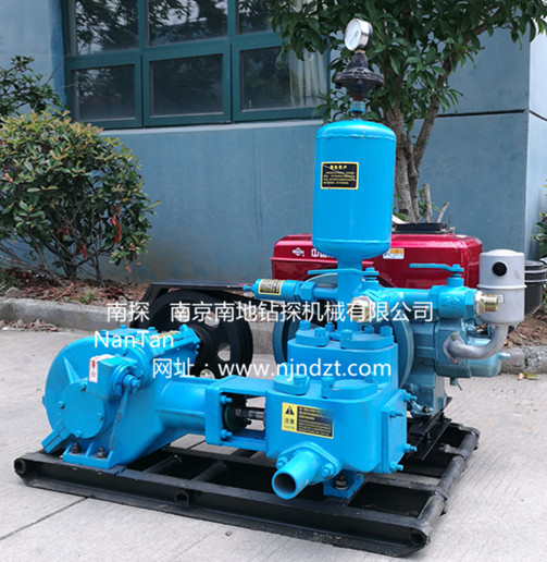 BW-160A型泥漿泵也就是BW160泥漿泵,為臥式單缸雙作用往復活塞式泵,泵頭上裝有四個Ф40鋼球閥,從而提高了壓力。主要用于物探中向爆破孔內提供沖洗液,亦可用于工程地質鉆機基巖鉆進中向井內供給沖洗液,該泵具有體積小、重量輕、耐用等特點,更適合地質勘探上使用。也可以進行水泥注漿、泥漿注漿灌漿等施工。