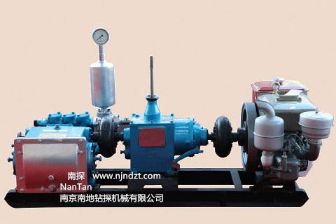主要特點(diǎn):1.具有可滿足大、小口徑鉆機(jī)所需的八擋流量,流量調(diào)節(jié)范圍大,參數(shù)選擇合理??膳cXY-4巖心鉆機(jī)和XY-5型鉆機(jī)配套使用??蓾M足不同口徑、不同孔深、不同地質(zhì)巖心鉆探的需要。 2.活塞為碗形加尼龍靠背的自封式S型聚胺脂橡膠活塞,大大提高使用壽命。 3.拉桿上設(shè)有五道防塵密封圈,以防止液力端的泥漿帶入動(dòng)力端和動(dòng)力端潤滑油濾。經(jīng)多次生產(chǎn)試驗(yàn)證明,密封可靠,性能良好。致使齒輪延長使用壽命。 4.進(jìn)排水閥采用鋼球。并在閥蓋上設(shè)有減聲橡膠墊,以減少?zèng)_擊噪聲。 5.壓力表采用BY-1型抗震壓力表,壽命長。 6.結(jié)構(gòu)緊湊,造型美觀。 7.可拆性好,便于維修和搬遷。