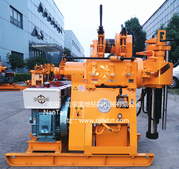 鉆機介紹:XY-200型鉆機集合了目前市場流行的XY-1、XY-1B、XY-1A等小型鉆機的主要功能和特點設計而成的。即采用XY-1的油壓自動給進,XY-1B的大模數(shù)齒輪傳動系統(tǒng),XY-1A的寬范圍轉(zhuǎn)速的較大扭矩輕型回轉(zhuǎn)鉆機。 為使本機的適用性更廣泛,滿足不同用戶的需求,推出移機型XY-200(YJ)型鉆機(帶移機功能)、增加了水泵(不帶移機) 的XY-200-1型和帶移機帶水泵功能的XY-200-2型鉆機。鉆機、柴油機(或電動機)安裝在同一底座上。鉆進深度可達200米。