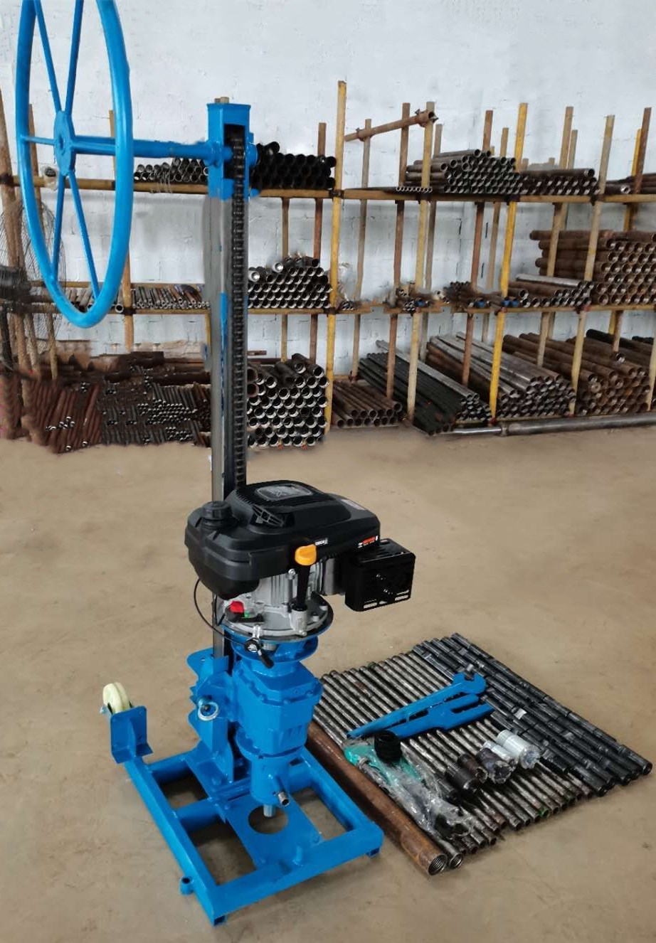 1、取樣鉆機(jī):含汽油發(fā)動(dòng)機(jī)、鉆進(jìn)裝置、鏈條式支架、轉(zhuǎn)向盤。