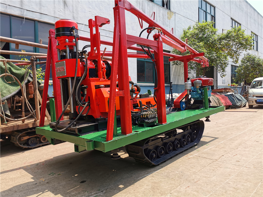 GXY-200B-L-02-B-STRZT型履帶鉆機是將橡膠履帶底盤、動力(柴油機或電機)、GXY-200B型鉆機、鉆機平臺、液壓支撐腿系統、人字形全液壓起落架、泥漿泵(單缸或雙缸)等共同組裝在一個機架上。鉆機一個動力(柴油機或電機),橡膠履帶底盤、泥漿泵一個動力(柴油機或電機)帶動,互不干擾,避免單動力變換負荷造成磨損影響施工。