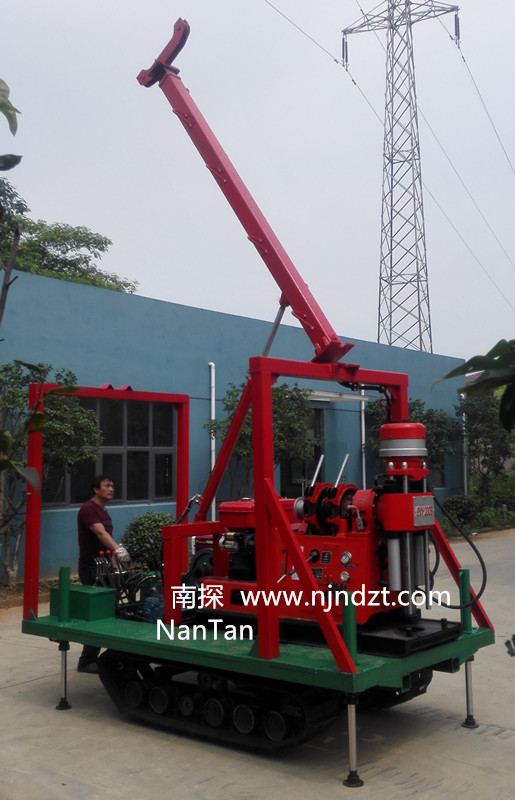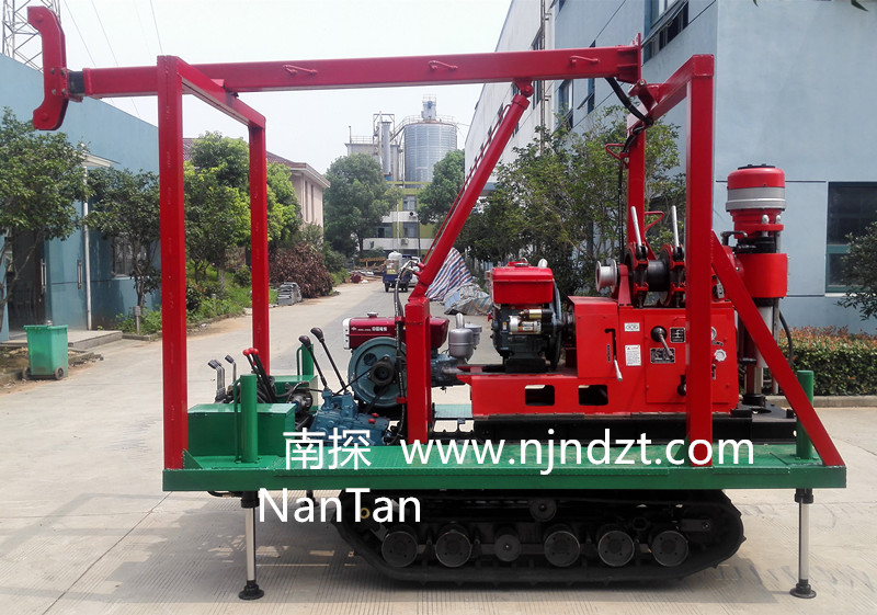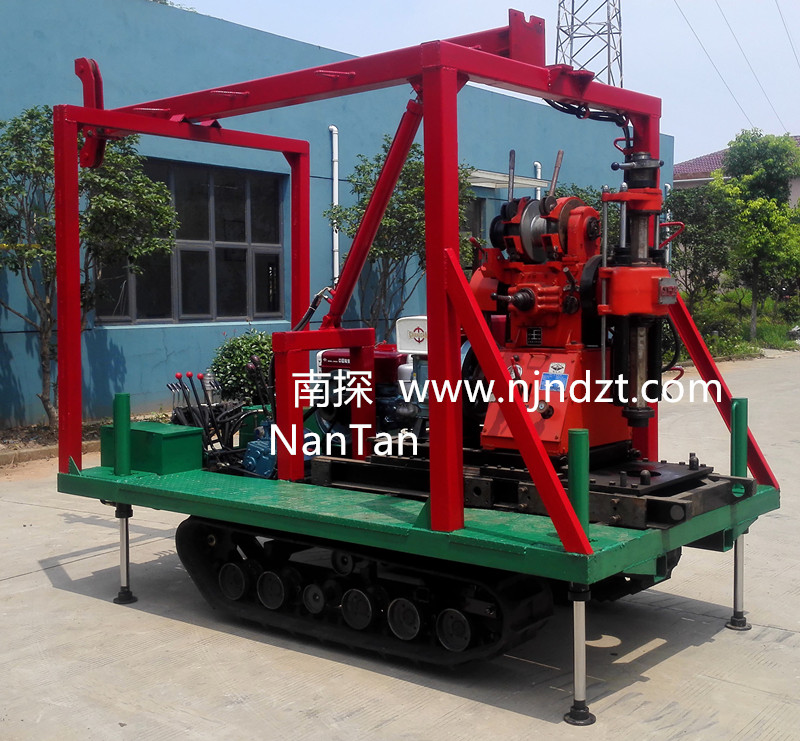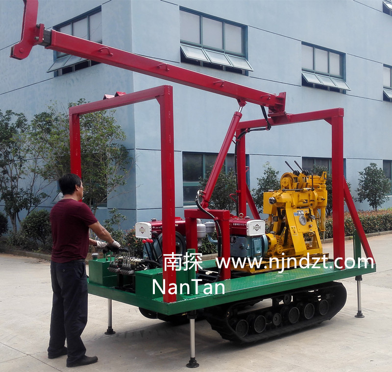 該履帶底盤承載重量達(dá)4T,可以裝載各種小型鉆機(jī),如:XY-1-1、XY-1、XY-1A、XY-1A(YJ)、XY-1A-4、XY-1A-5、XY-1B、XY-1B-1、XY-1B-2、XY-200、XY-200(YJ)、XY-200B、XY-200B-1、XY-200B-2、GXY-1系列、GXY-2Q、GXY-200B、GYQ-200、GYQ-200A、GK180、GXY-2K、GXY-2C等100-300米鉆機(jī),并可同時(shí)載BW160、BW160A、BW200或BW200A型泥漿泵,具有可調(diào)伸縮式液壓起落鉆塔、行走方便等特點(diǎn),廣泛適用于公路、鐵路、水電、橋梁、壩基等的工程地質(zhì)勘察、地質(zhì)巖芯鉆探、物理勘察、小型灌漿孔、爆破孔、水井孔和空調(diào)孔的鉆進(jìn)。